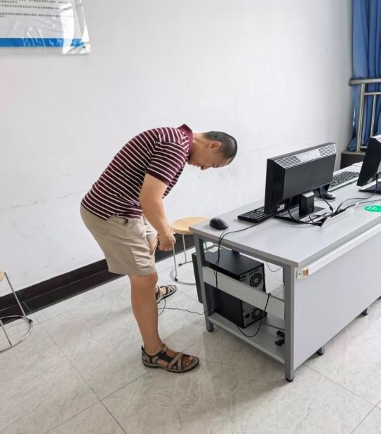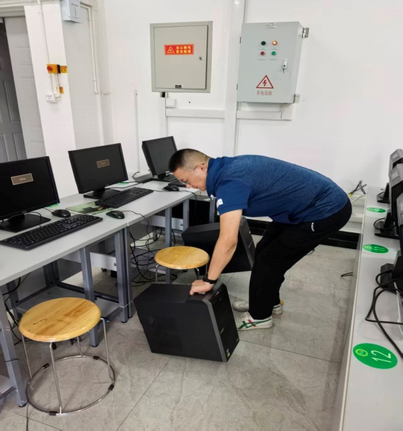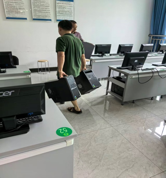 2、老师们对自己分管的机房进行设备调试,确保开学上课顺利进行。